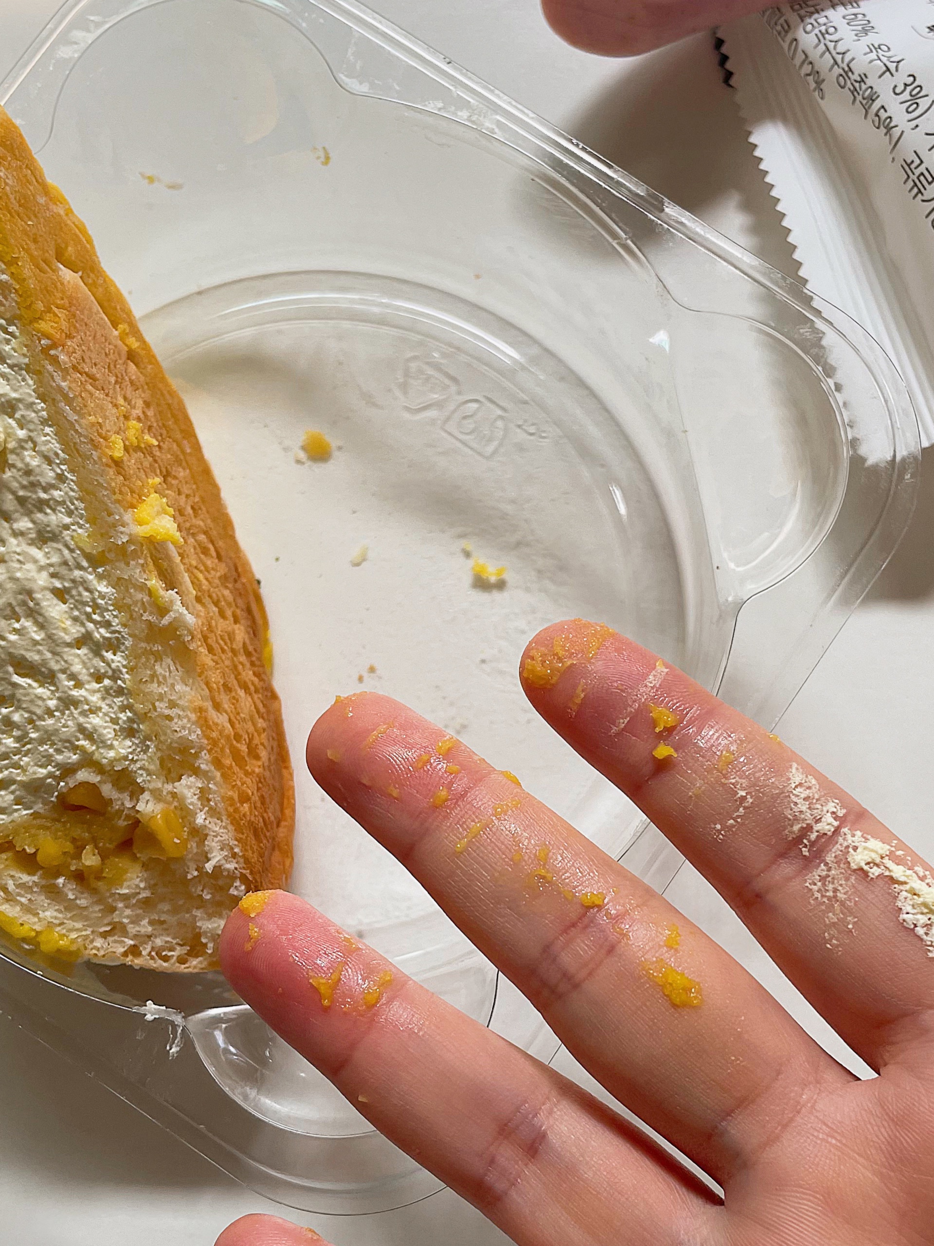 그리고 먹은 후 손에 덕지덕지 붙은 크림과 쿠키..